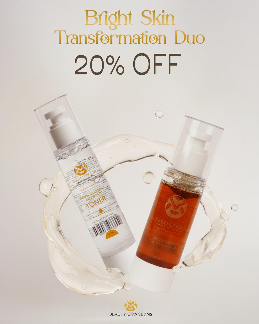 The Bright Skin Transformation Duo creates a clean and balanced foundation for your skincare routine. This set pairs the Brightening Facial Cleanser with the Intense Clarifying Toner to help cleanse, refine, and refresh the skin.
